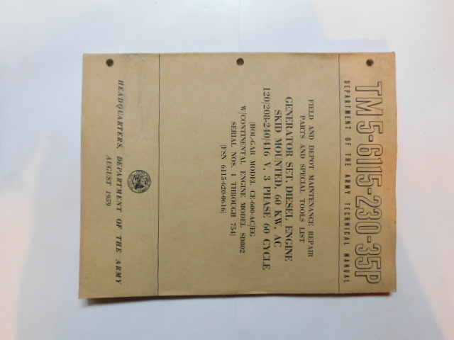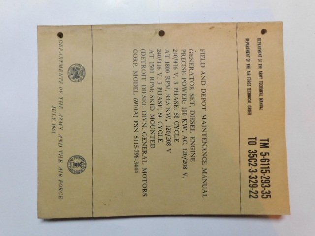 | TM5_6115_291_35P | Manuel Technique, Generator Set, Diesel Engine, LUMEN Model 2207, June 1961 |