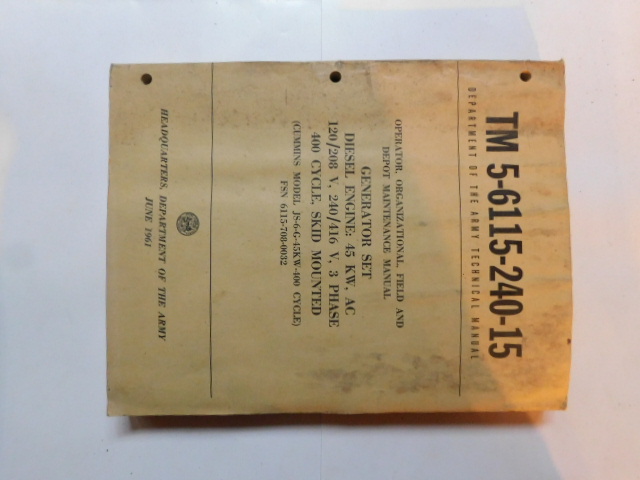 | TM5_6115_223_10 | Manuel Technique, Generator Set, Diesel Engine, CUMMINS Model NHRS 6G, June 1959 |