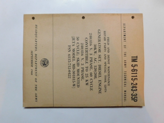 | TM5_6115_243_35P | Manuel Technique, Generator Set, Diesel Engine, JETA MD-301815-W, September 1960 |