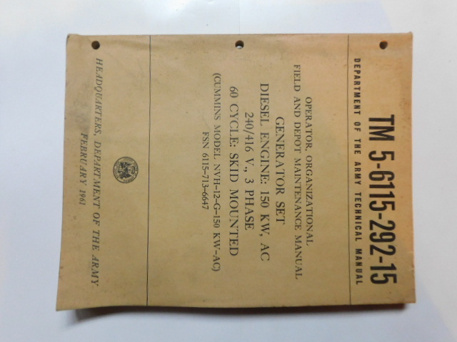 | TM5_6115_292_15 | Manuel Technique, Generator Set, CUMMINS Model NVH-12-G-150 KW-AC, February 1961 |