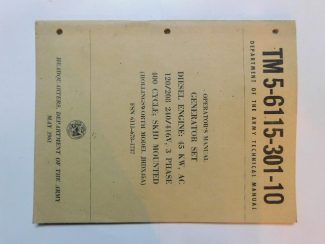 | TM5_6115_301_10_COP | Manuel Technique, Generator Set, HOLLINGSWORTH JHDX45A, May 1961 (copie) |
