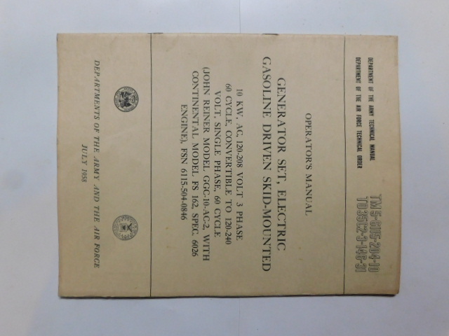 | TM5_6115_204_10 | Manuel Technique, Generator Set, JOHN REINER Model GGC-10-AC-2, July 1958 |