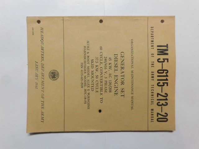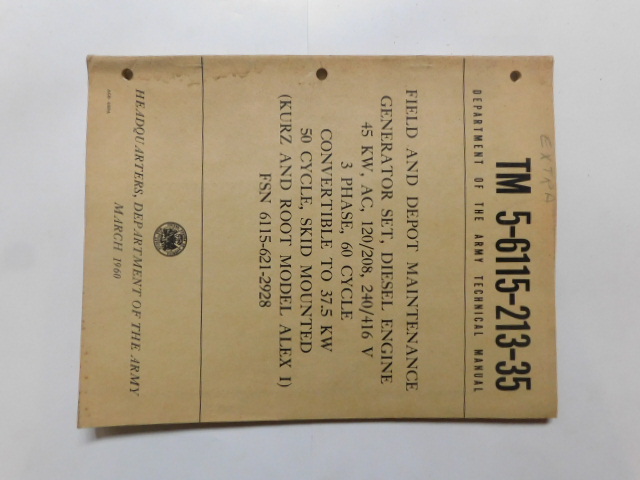 | TM5_6115_213_20 | Manuel Technique, Generator Set, KURZ and ROOT Model ALEX I, January 1961 |