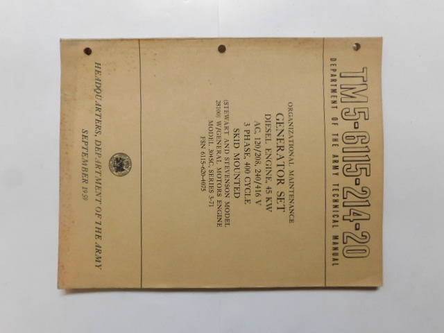 | TM5_6115_214_20 | Manuel Technique, Generator Set, STEWART AND STEVENSON 28100, September 1959 |