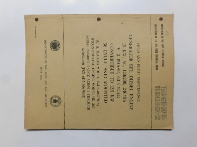 | TM5_6115_217_35 | Manuel Technique, Generator Set, U.S MOTORS Model 15-US-10327B-A, June 1959 |