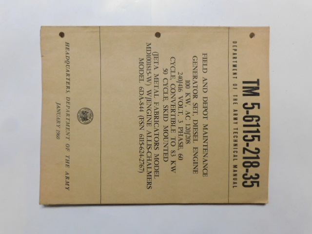 | TM5_6115_218_35 | Manuel Technique, Generator Set, JETA METAL FABRICATORS MD1001815W, January 1960 |