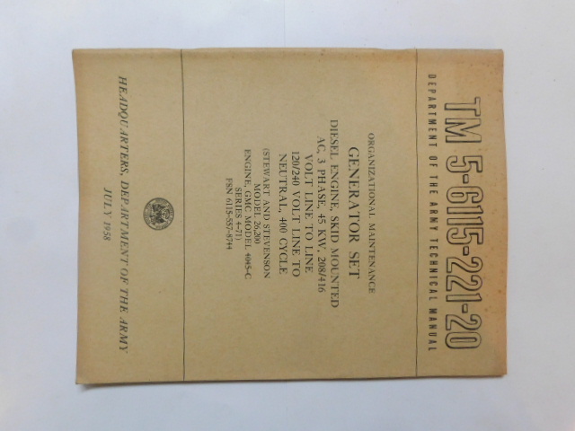 | TM5_6115_221_20 | Manuel Technique, Generator Set, STEWART AND STEVENSON Model 26.200, July 1958 |