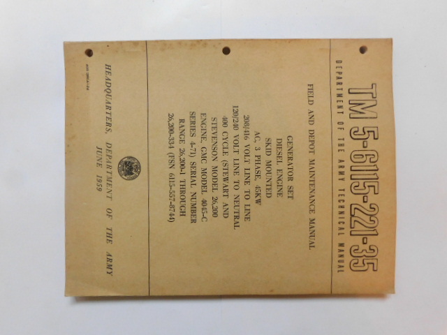 | TM5_6115_221_35 | Manuel Technique, Generator Set, STEWART AND STEVENSON Model 26.200, June 1959 |