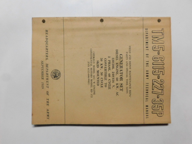 | TM5_6115_227_35P_1959_COP | Manuel Technique, Generator Set, SZEKELY Model 501, September 1959 (copie) |