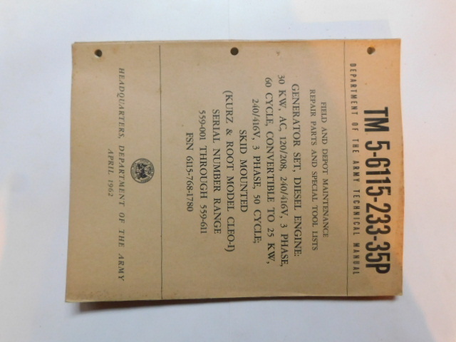 | TM5_6115_233_35 | Manuel Technique, Generator Set, KRUZ and ROOT Model CLEO-1, February 1962 |