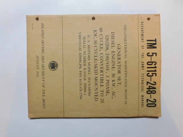 | TM5_6115_248_20_1961_COP | Manuel Technique, Generator Set, U.S MOTORS 30-US-169336-1, August 1961 (copie) |