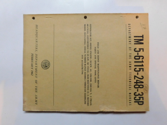 | TM5_6115_248_35P_1962 | Manuel Technique, Generator Set, U.S. MOTORS Model 30-US-16936, February 1962 |