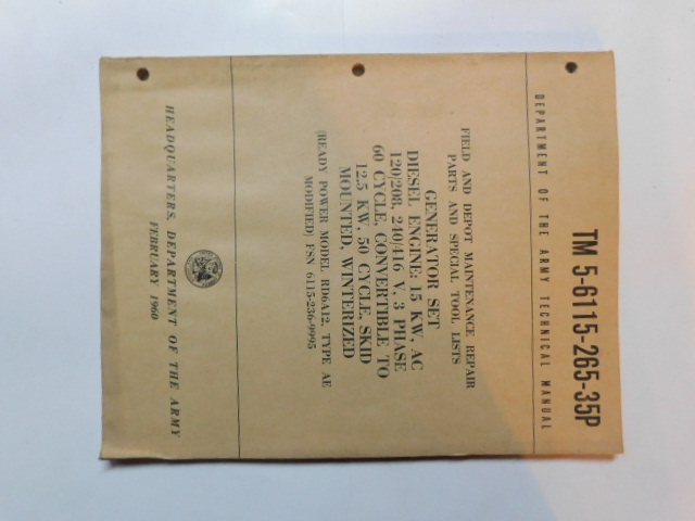 | TM5_6115_265_35P_COP | Manuel Technique, Generator Set, READY POWER RD6A12 Type AE MOD. , 1960 (copie) |
